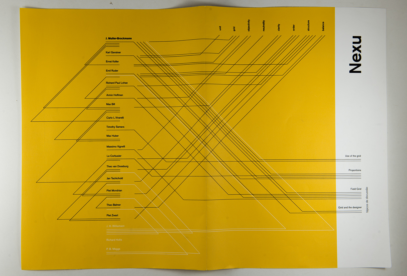 In this number we present the Grid as the main subject. First with a historic introduction by J. H. Whilliamson, Richard Hollis and Phillip Meggs. Being the reader aware of such notions, the dialog begins, having Joseph Muller-Brockmann as a main reference and several others like Karl Gerstner, Emil Ruder, Ernest Keller, Max Bill and Piet Zwart with their own alternated inputs, either agreeing or not.